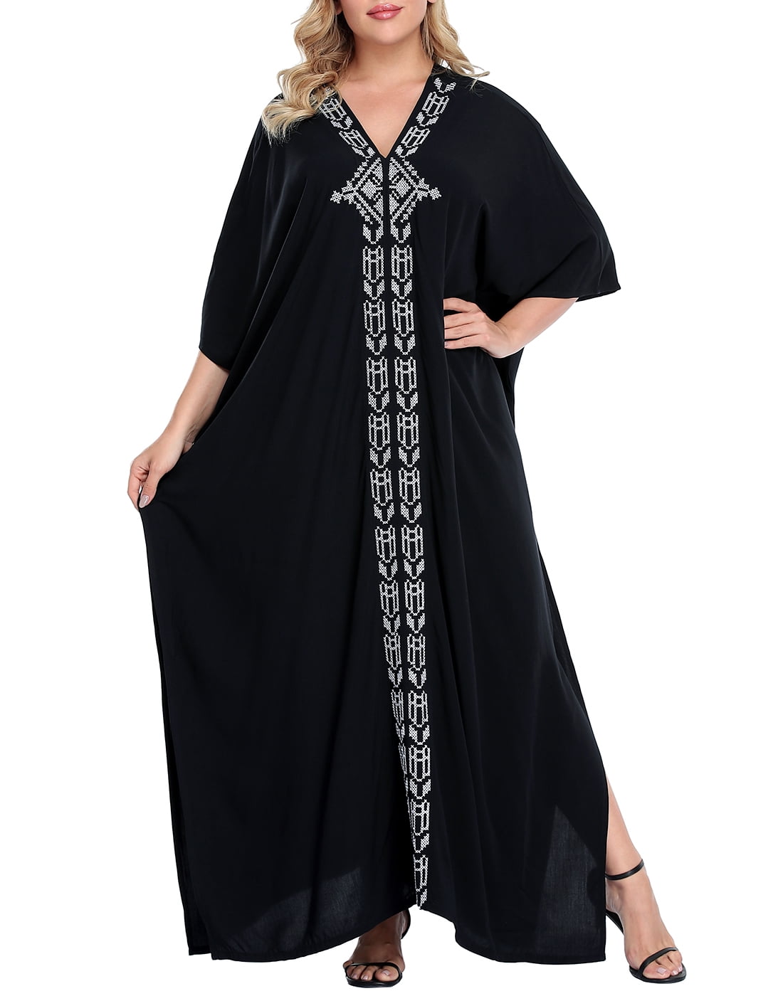 Hde Women Upf 30 Kaftan Dress Oversize V Neck Long Plus Size Maxi Swim Cover